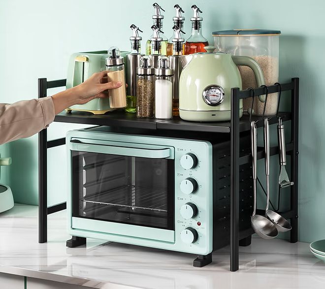 独特的设计理念,结合现代家居风格,既实用又时尚。可调节的高度,适应不同厨房需求,轻松放置微波炉,解放你的操作台。让你在烹饪时更加游刃有余,享受烹饪的乐趣。 高质量材料,稳固耐用,承重能力强,不用担心承载问题。无论是大厨还是新手,这款置物架都能成为你厨房的得力助手。再也不怕找不到调料,所有小物件都能井然有序!